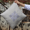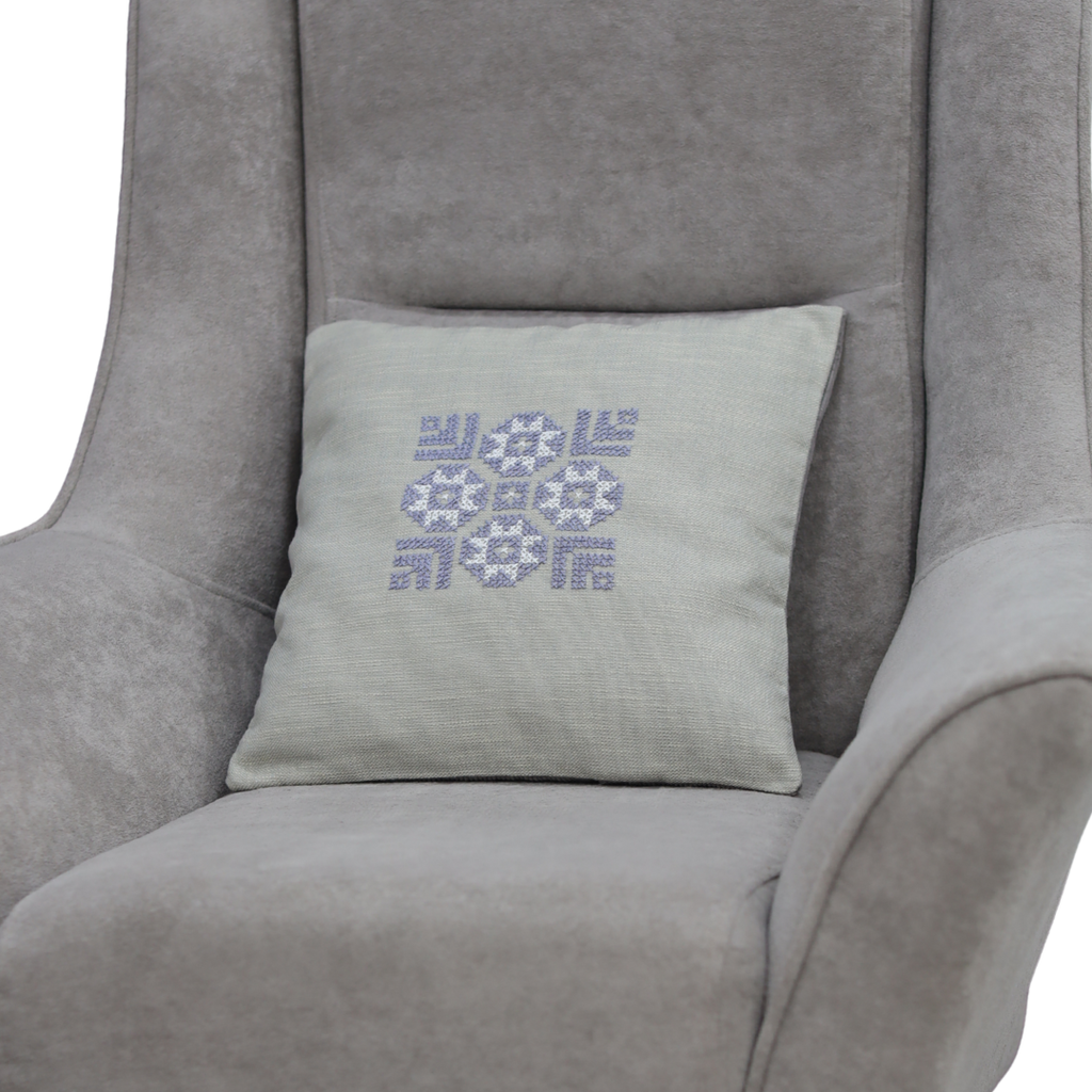 Gray Pillow Cover is a great way to add a pop of color to your living space. Embroidered with a beautiful tatreez design, you can share your Palestinian heritage with all your guests. The tatreez motif on this pillow is called "Cow Eyes" (Eyoon Al Baqar in Arabic) tatreez motif.