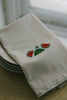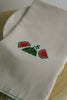 This tea towel features an "Watermelon" tatreez motif. The design takes 2 hours for our Darzah artisans to embroider. Your purchase will support 1/4 of a day's empowering work for a talented woman artisan in Palestine!